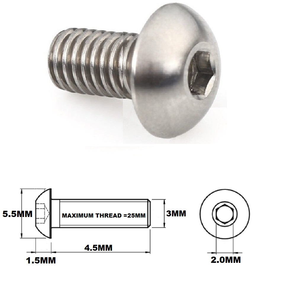 M3X4.5MM 0.5 THREAD PITCH TITANIUM BUTTON HEAD BOLT GRADE 5